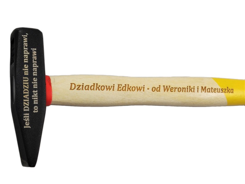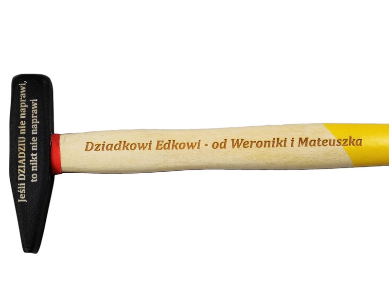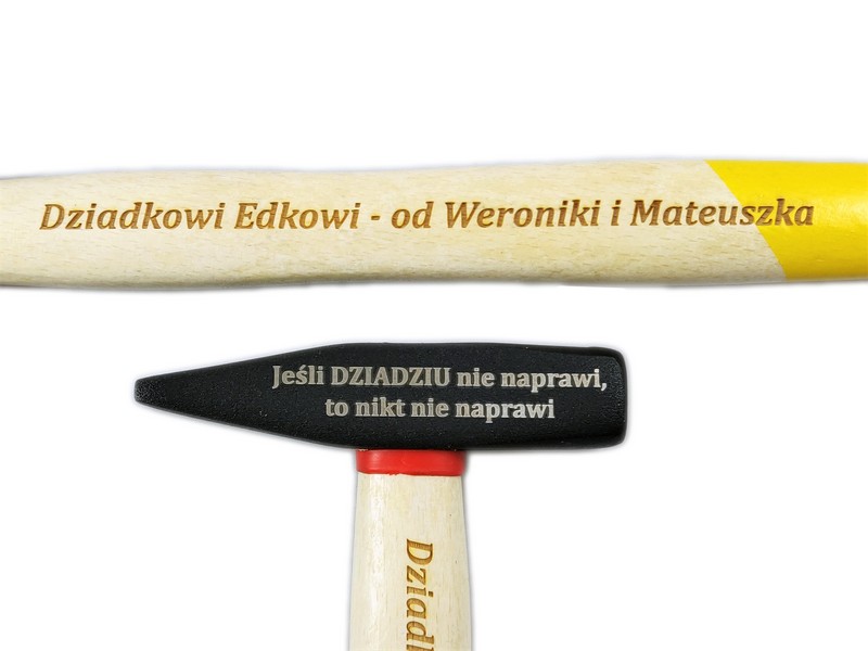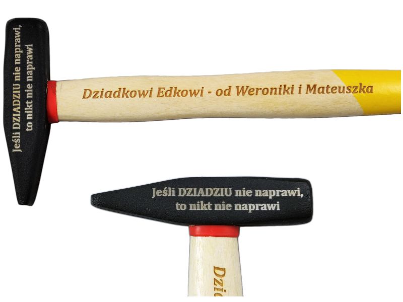 Upominek dla Dziadka w postaci standardowego młotka z grawerem dedykacji.