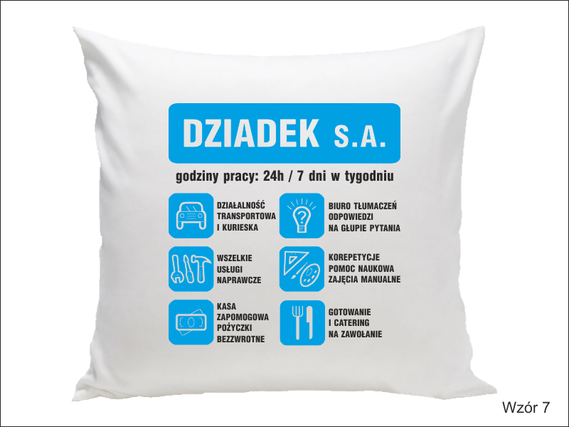 Inne modele poszewek z możliwością okolicznościowego nadruku na Dzień Dziadka znajdziesz w kategorii "Upominki/Poszewki z nadrukiem"