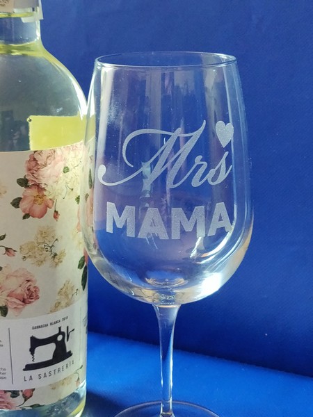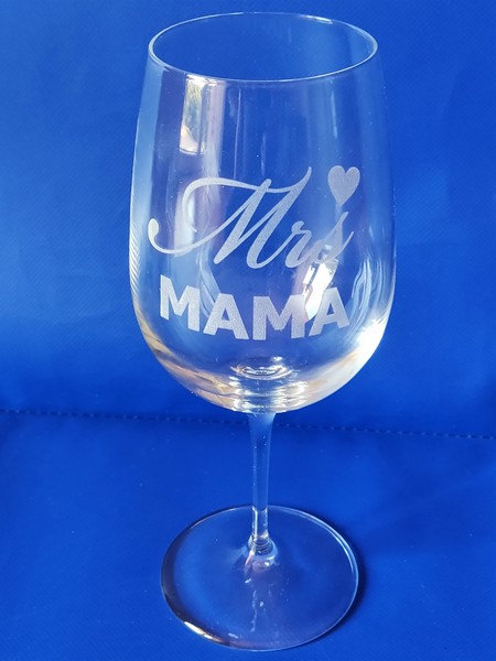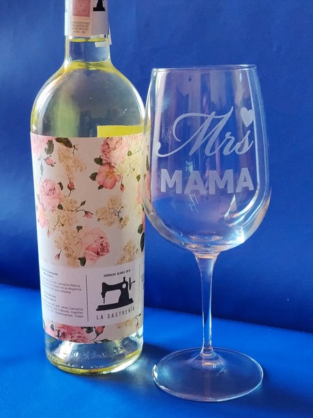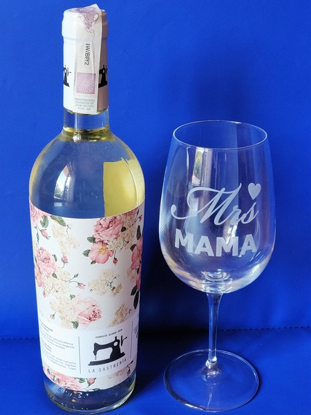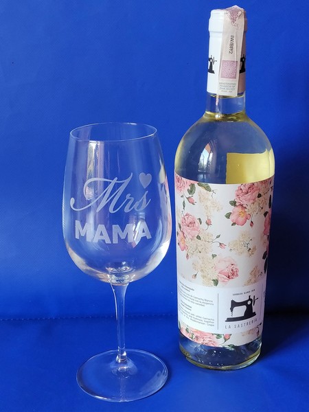 Pamiątkowy upominek dla Mamy w formie kieliszka do wina z grawerem.