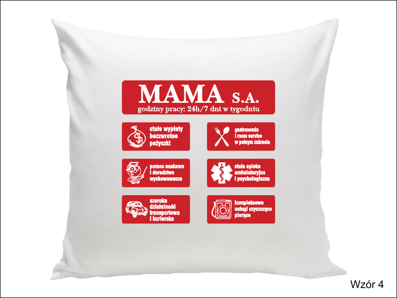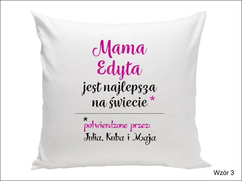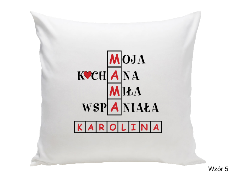 Inne modele poszewek z możliwością okolicznościowego nadruku na Dzień Matki znajdziesz w kategorii "Upominki/Poszewki z nadrukiem"