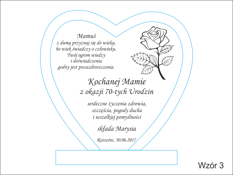 Istnieje możliwość graweru dedykacji wg indywidualnych ustaleń i projektu lub wg jednego ze wzorów.