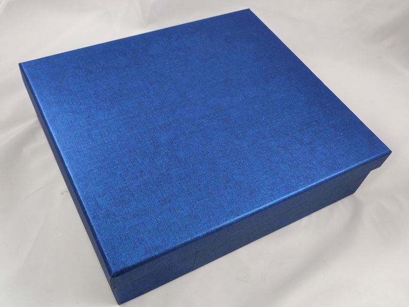 Statuetka pakowana jest w ozdobne, kartonowe, wyściełane materiałem, niebieskie etui.