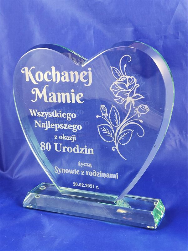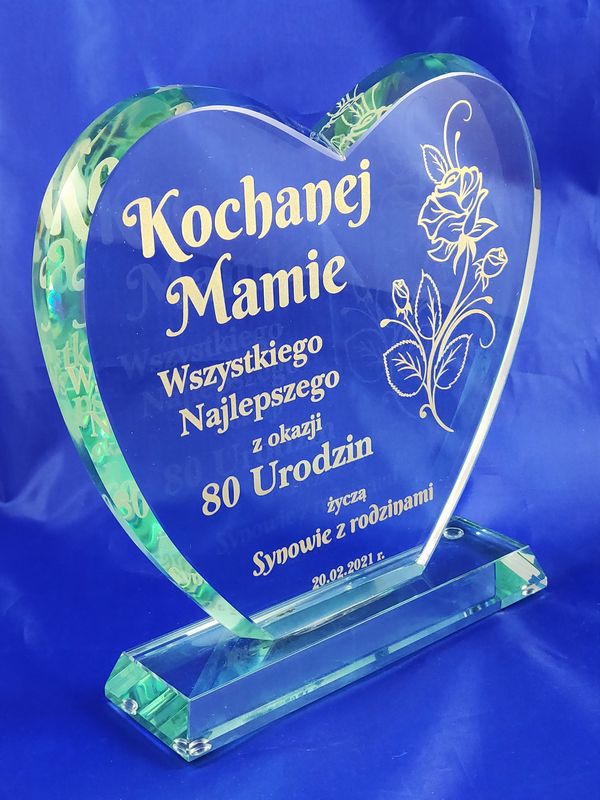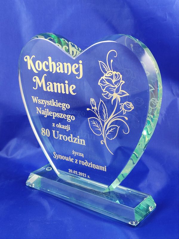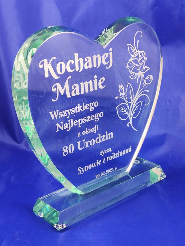 Pamiątkę szklaną w formie statuetki z grawerem dla mamy można także wykonać na innych modelach statuetek szklanych.