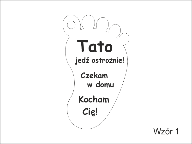 Breloczek wykonany jest ze sklejki grubości 3 lub 5 mm, wyciętej w kształcie stopy.