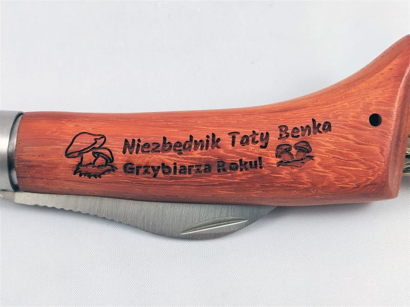 Upominek dla Taty w postaci praktycznego niezbędnika grzybiarza z grawerem dedykacji.