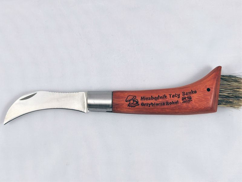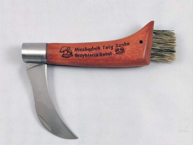 Klinga noża jest wyprofilowana i zaokrąglona po łuku dzięki czemu ułatwia podcinanie i zbieranie grzybów.