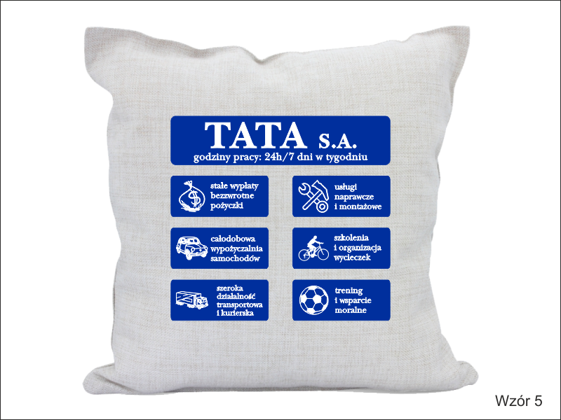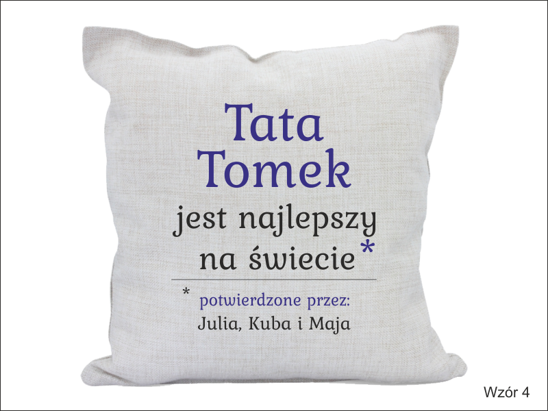 Inne modele poszewek z możliwością okolicznościowego nadruku na Dzień Ojca znajdziesz w kategorii "Upominki/Poszewki z nadrukiem"