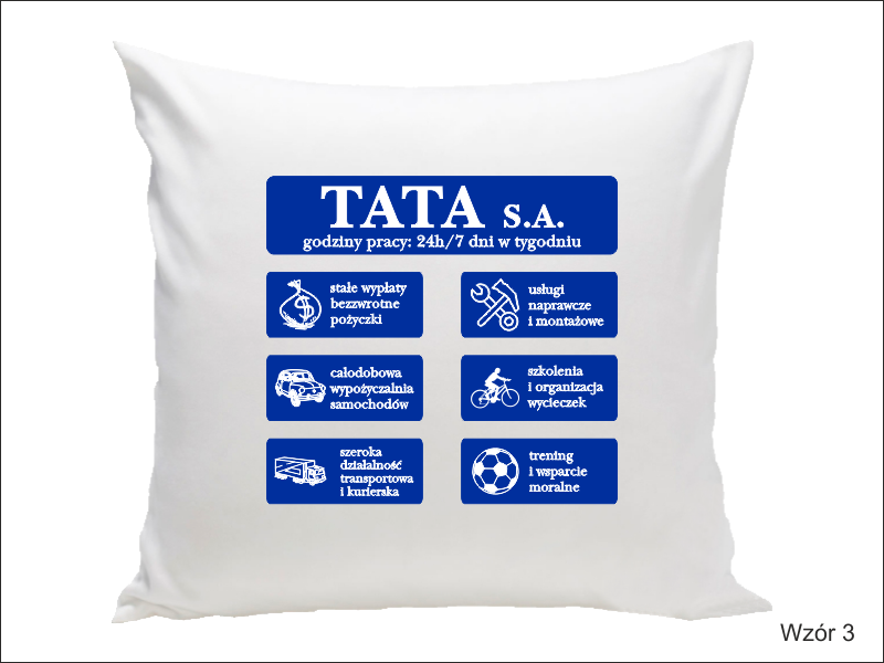 Inne modele poszewek z możliwością okolicznościowego nadruku na Dzień Ojca znajdziesz w kategorii "Upominki/Poszewki z nadrukiem"