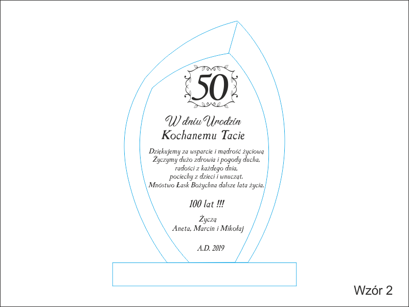 Istnieje możliwość graweru dedykacji wg indywidualnych ustaleń i projektu lub wg jednego ze wzorów.