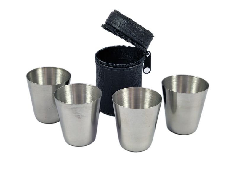 Do piersiówki można dodatkowo zamówić komplet 4 kieliszków ze stali nierdzewnej.