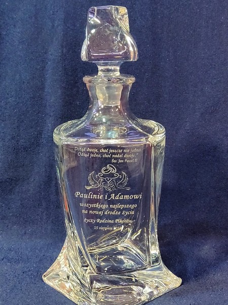 Karafkę można wręczyć z okazji różnych uroczystości, nie tylko na pamiątkę ślubu, ale także rocznicy ślubu, jubileuszu, urodzin ...