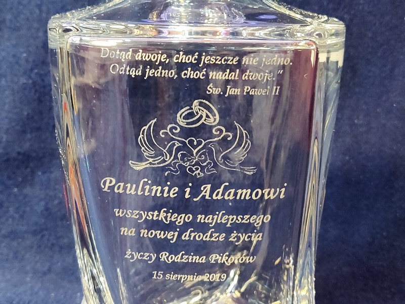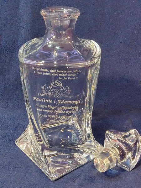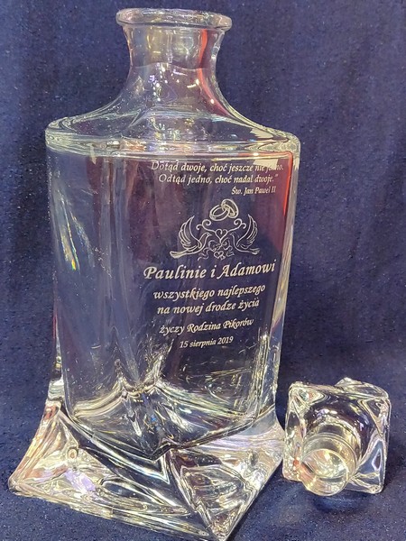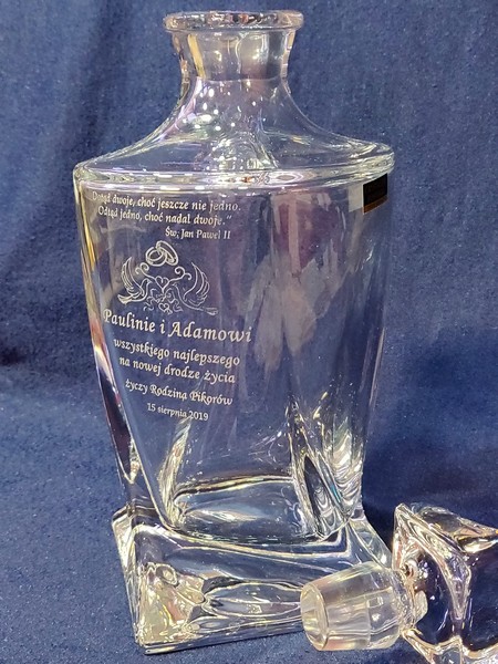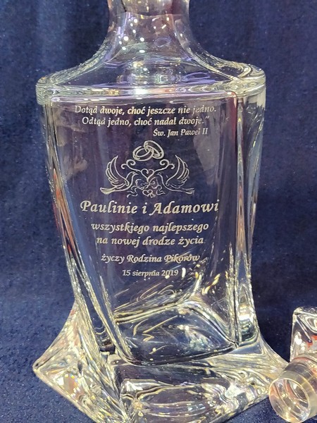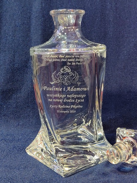Pamiątkowy grawer na Ślub można także wykonać na innych modelach karafek.