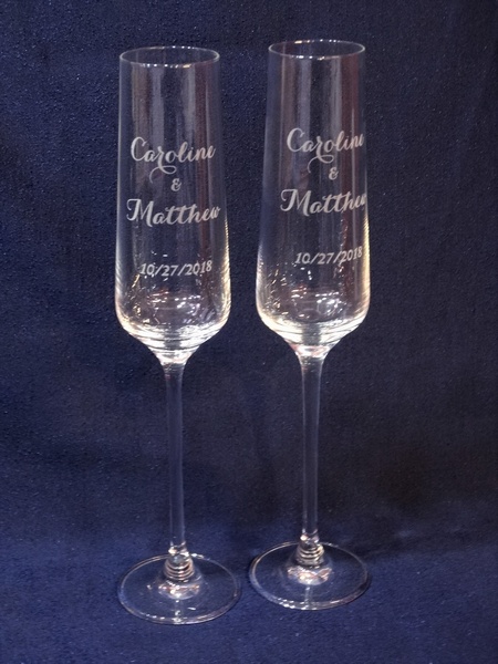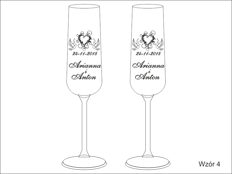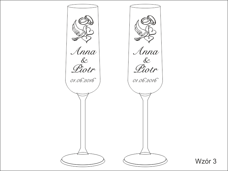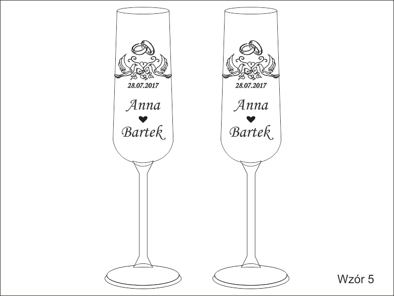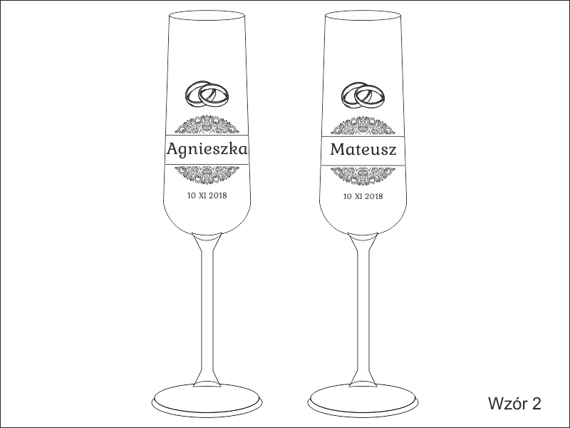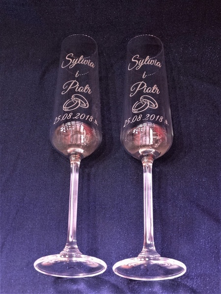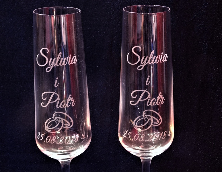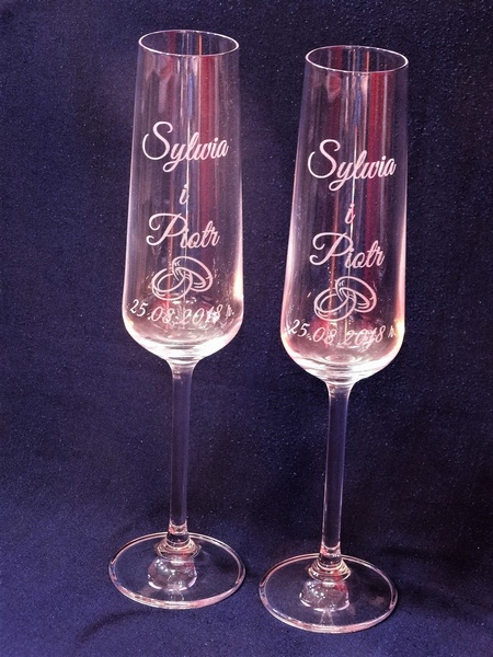 Komplet 2 kieliszków do szampana kryształowy Bohemia Viola z grawerem dedykacji i ozdobników z okazji Ślubu.