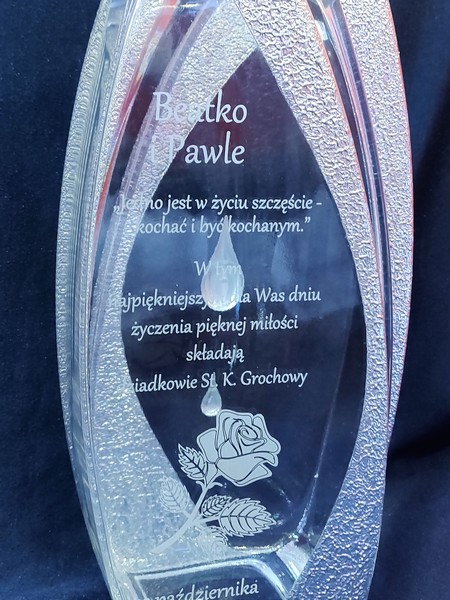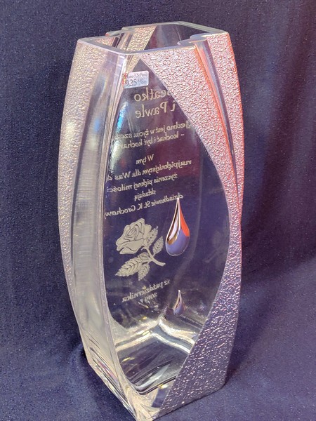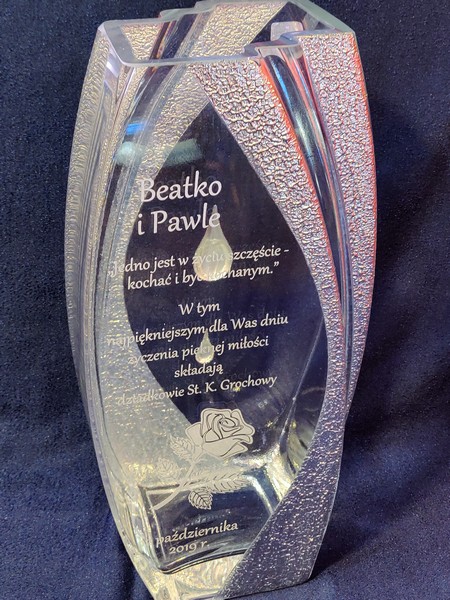 Pamiątkowy grawer z okazji ślubu można także wykonać na innych modelach wazonów.
