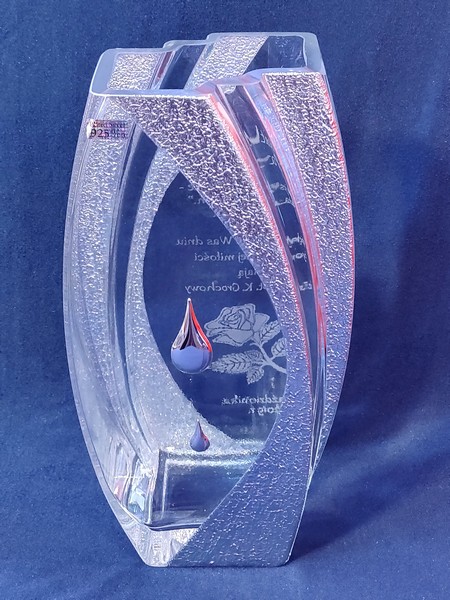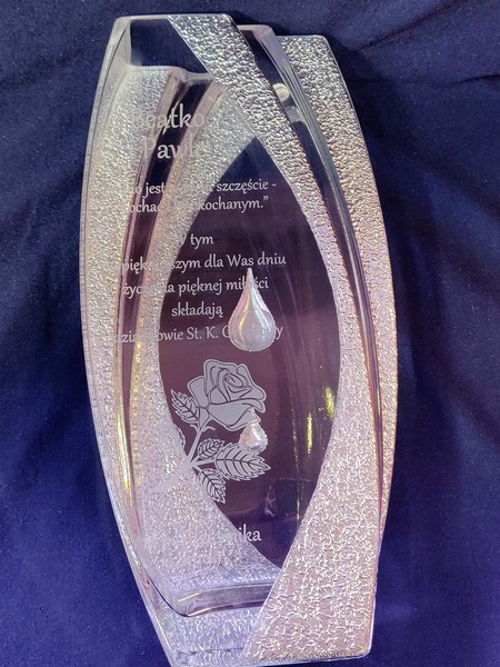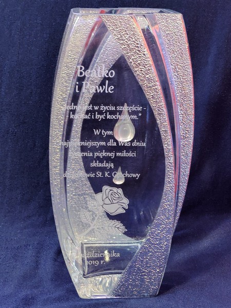 Intrygująca forma i zdobienie wazonu w połączeniu z dedykowanym pamiątkowym grawerem wzbudzi zachwyt i niepowtarzalne emocje obdarowanych.