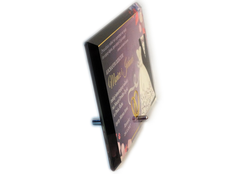 Pamiątkę ślubną z nadrukiem można także wykonać na innych modelach statuetek szklanych.