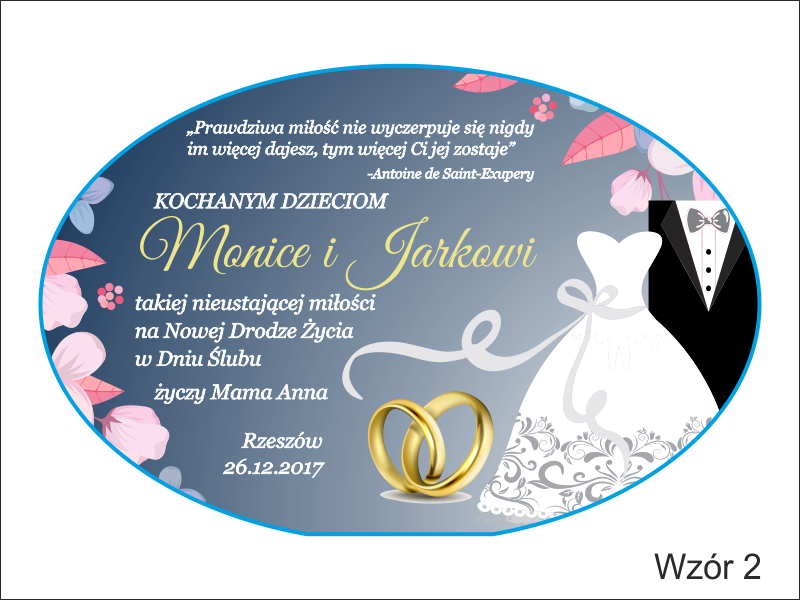 Istnieje możliwość wykonania dedykacji wg indywidualnych ustaleń i projektu uzgodnionego z klientem lub wg jednego z wzorów.