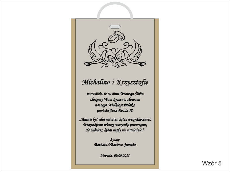 Istnieje możliwość graweru dedykacji wg indywidualnych ustaleń i projektu lub wg jednego ze wzorów.