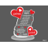 Pamiatka Ślubu w postaci statuetki z pleksy w kształcie rozwiniętego rulonu z dołączonymi sercami.