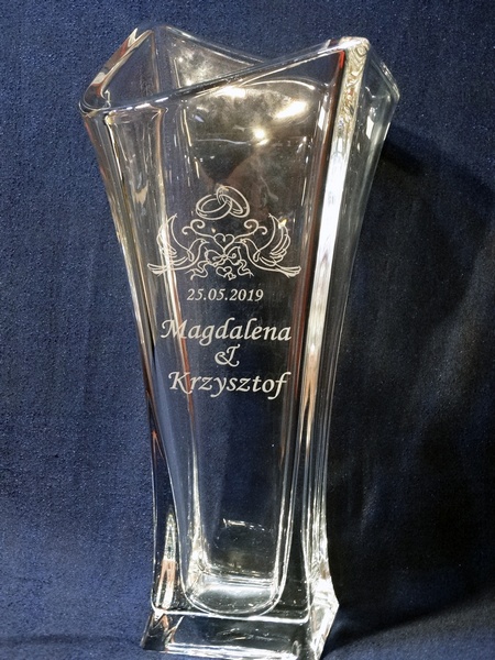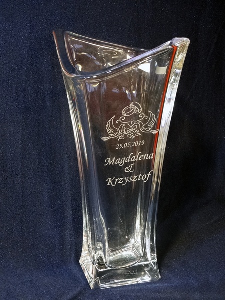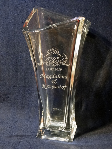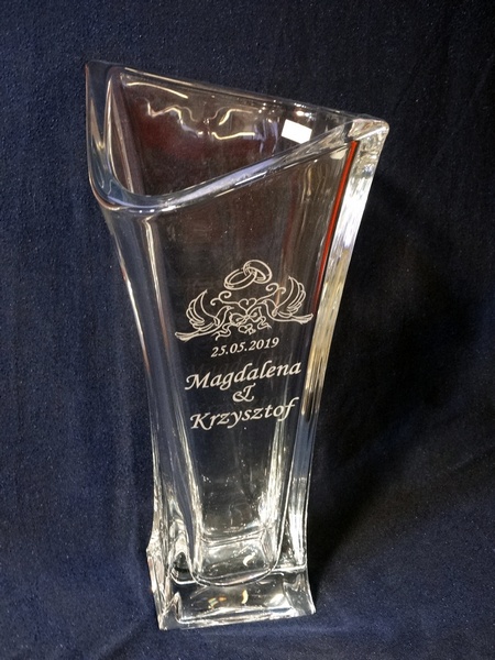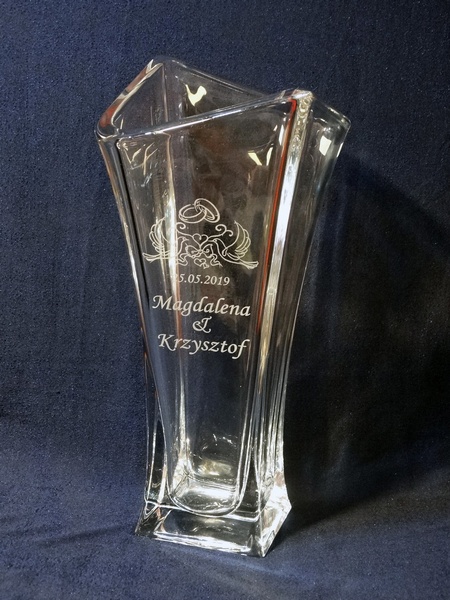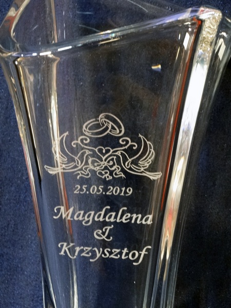 Pamiątkowy grawer na pamiątkę ślubu można także wykonać na innych modelach wazonów.