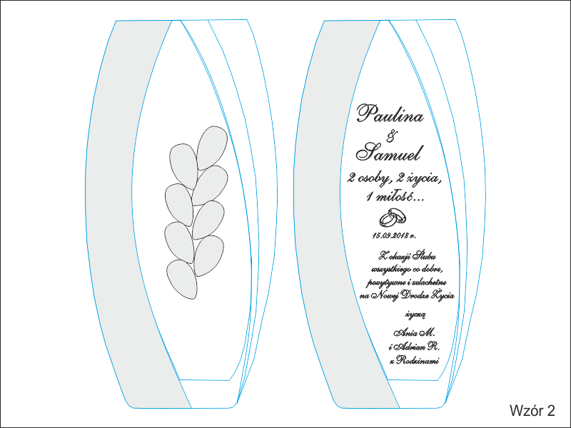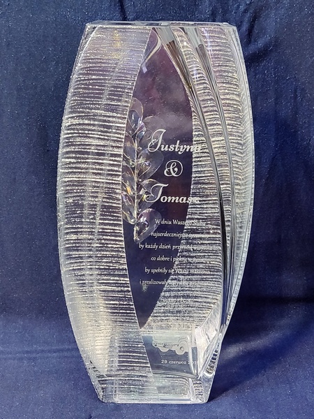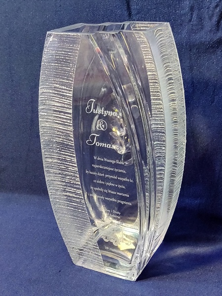 Pamiątkowy grawer z okazji ślubu można także wykonać na innych modelach wazonów.