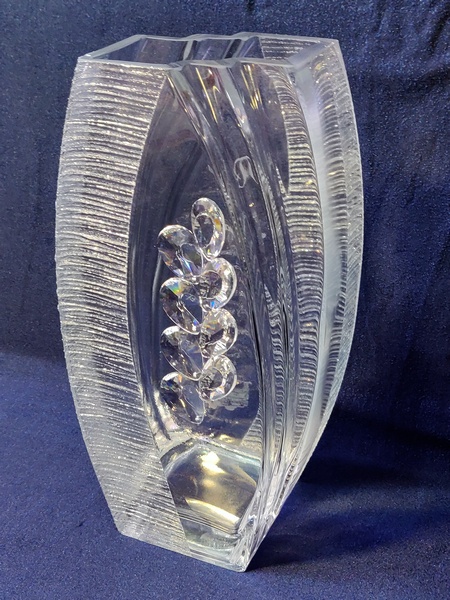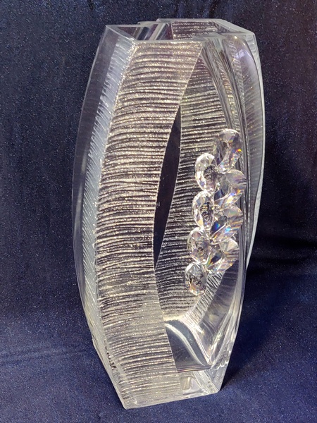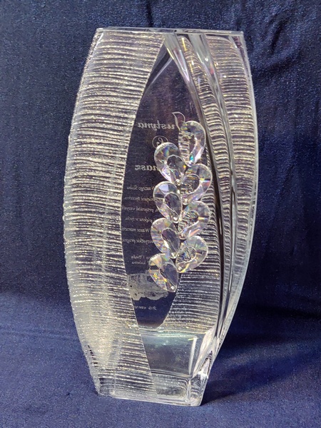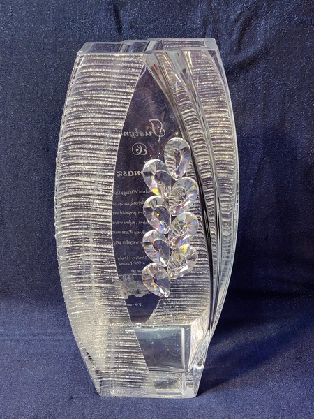 Wyjątkowy prezent na pamiątkę ślubu w postaci zdobionego szklanego wazonu Diana z ozdobnym szklanym kłosem i grawerem.