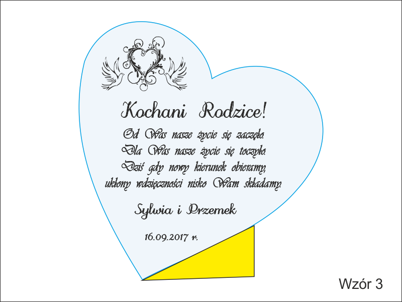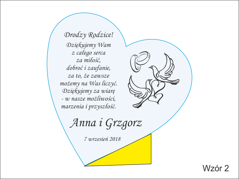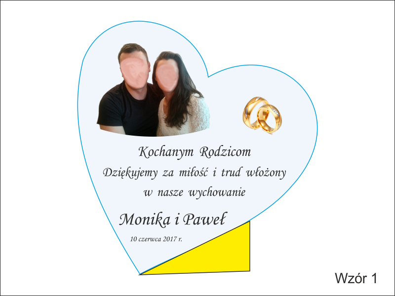 Na statuetce wykonany jest grawer ozdobnych grafik i dedykacji z podziękowaniem dla rodziców na pamiątkę ślubu.