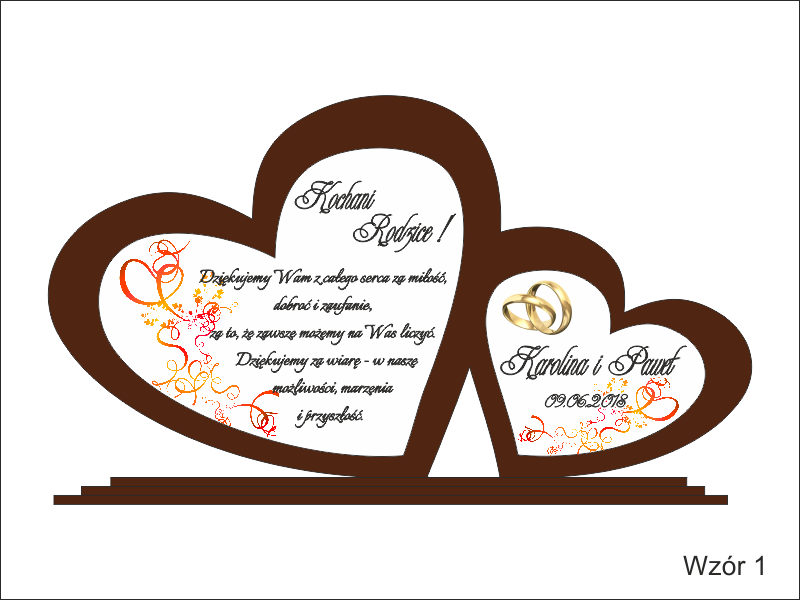 Na sercach wykonany jest nadruk ozdobnych grafik i dedykacji.