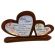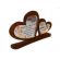 Serca z pleksy umieszczone są w wyciętej i pomalowanej brązową bejcą ramce wykonanej z drewnianej sklejki.