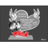 Poniżej serca jest grawerowana z czerwonego laminatu wstęga z imionami państwa młodych oraz datą ślubu.