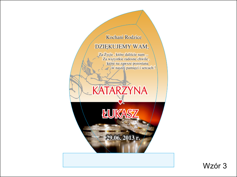 Pamiątkę z nadrukiem dla rodziców można także wykonać na innych modelach statuetek szklanych.
