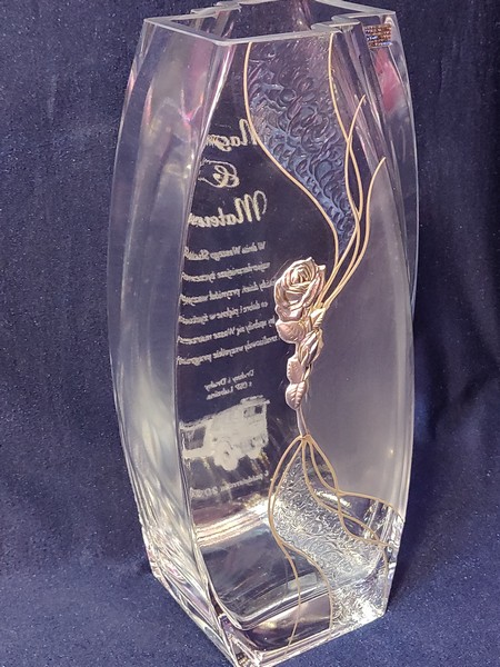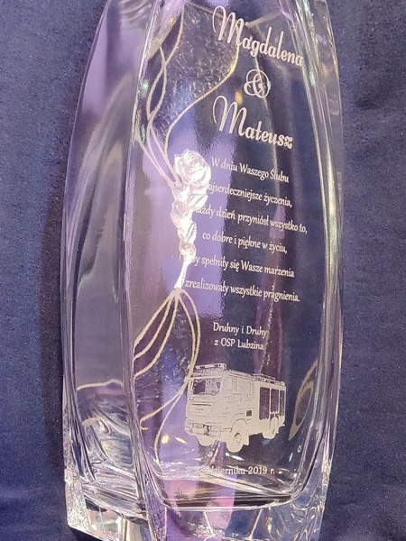 Pamiątkowy grawer z okazji ślubu można także wykonać na innych modelach wazonów.