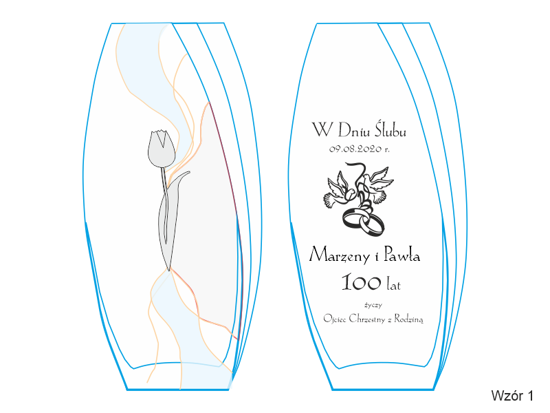 Pamiątkowy grawer z okazji ślubu można także wykonać na innych modelach wazonów.