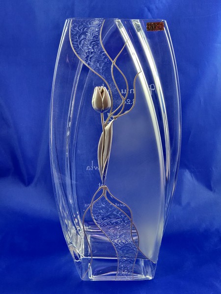 Intrygująca forma i zdobienie wazonu w połączeniu z pamiątkowym grawerem wzbudzi zachwyt i emocje obdarowanych.