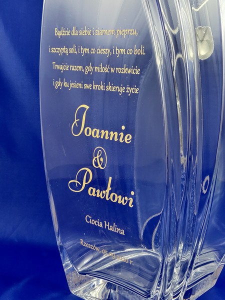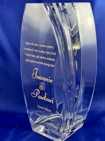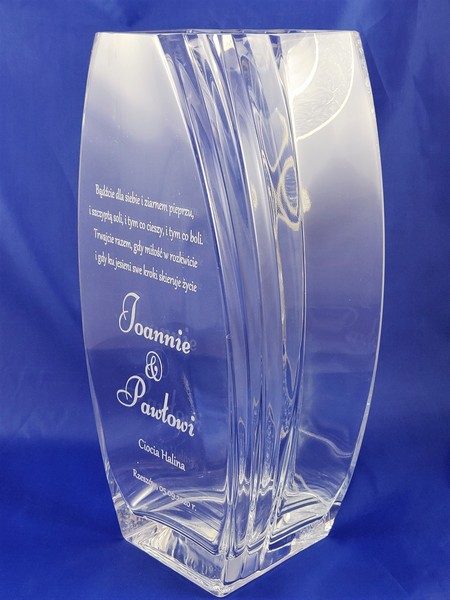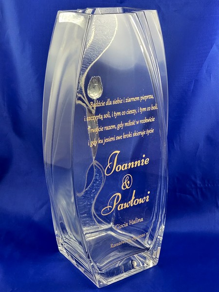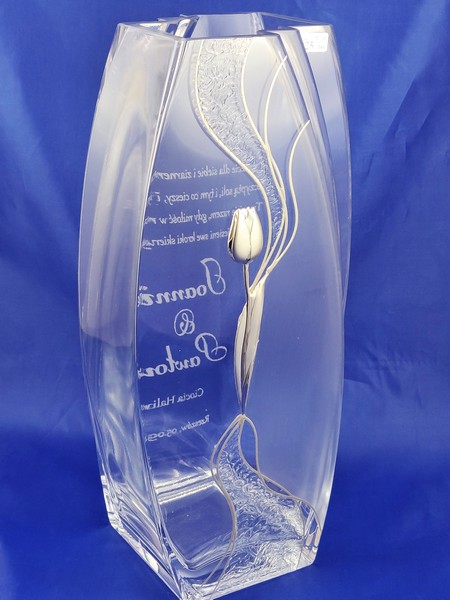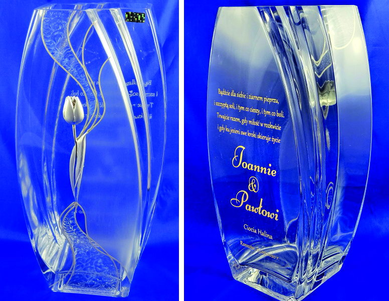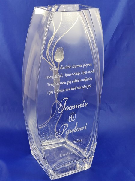Pamiątkowy grawer z okazji ślubu można także wykonać na innych modelach wazonów.