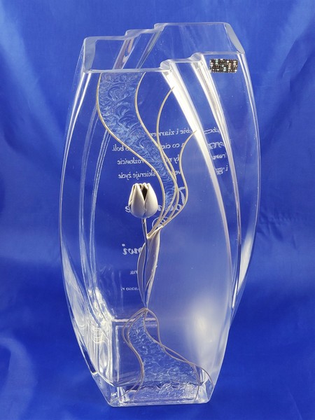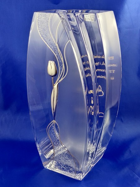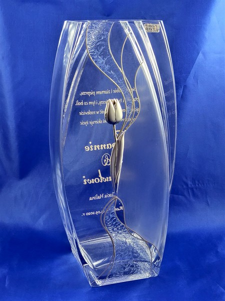 Intrygująca forma i zdobienie wazonu w połączeniu z dedykowanym pamiątkowym grawerem wzbudzi zachwyt i niepowtarzalne emocje obdarowanych.