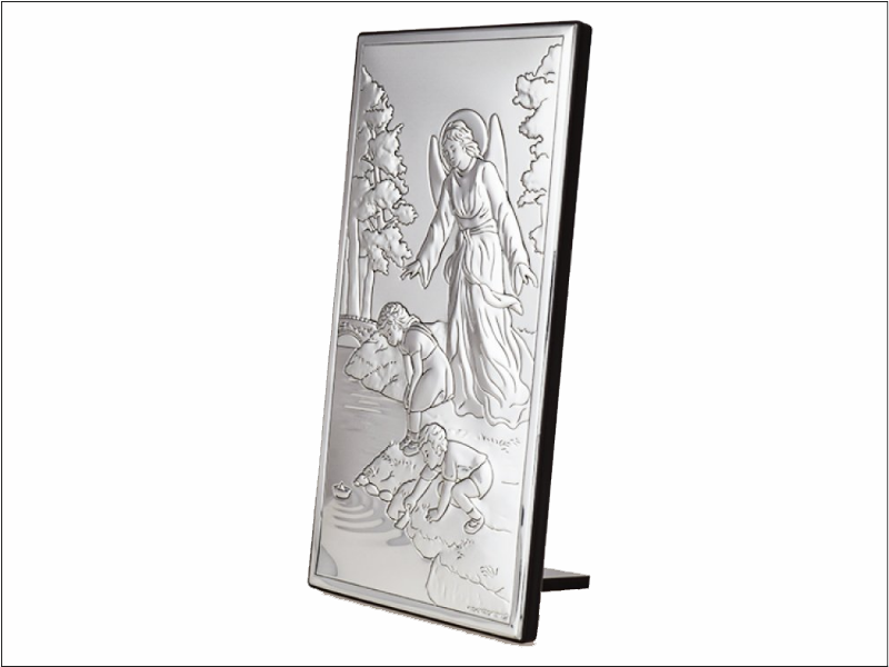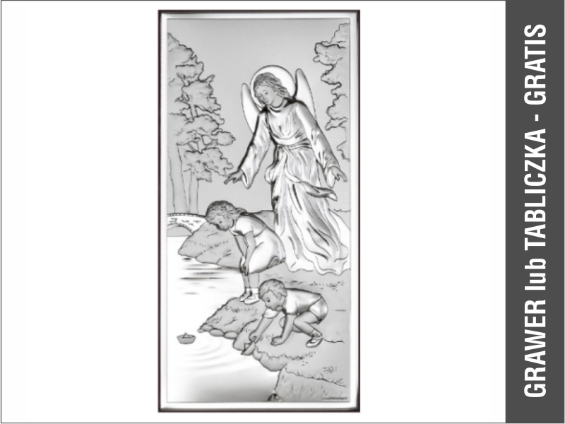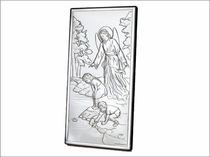 Srebrny Obrazek "Anioł Stróż z dziećmi nad rzeczką 6497 prostokątny".