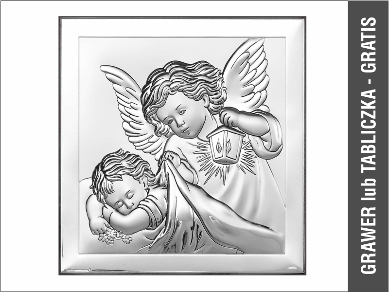 - obrazek srebrny przedstawiający Aniołka z latarenką