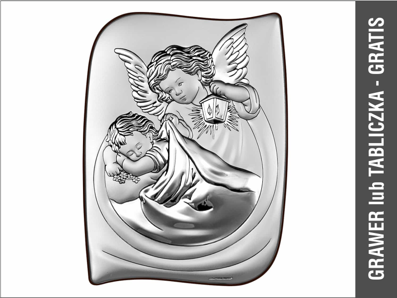 - obrazek srebrny przedstawiający Aniołka z latarenką