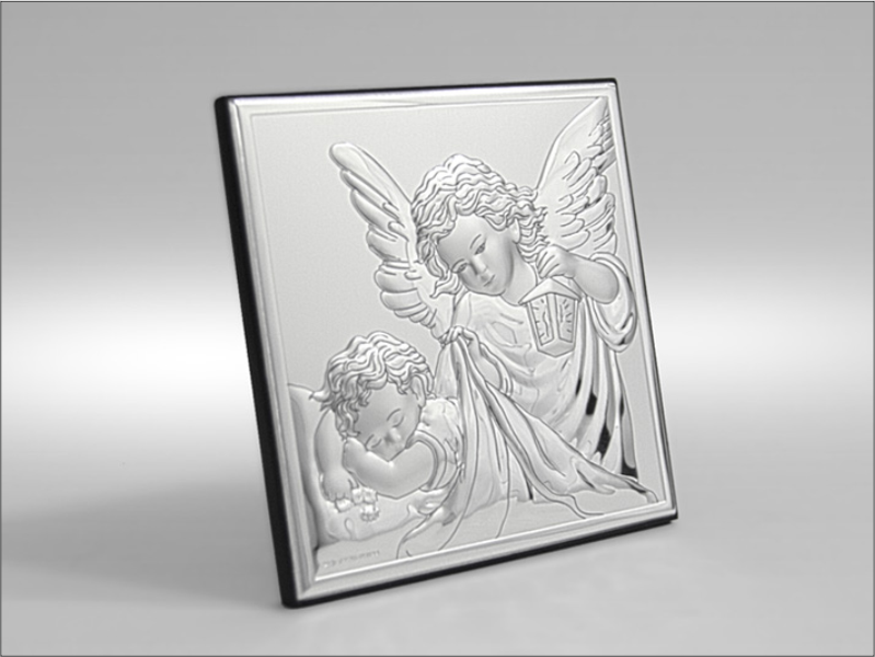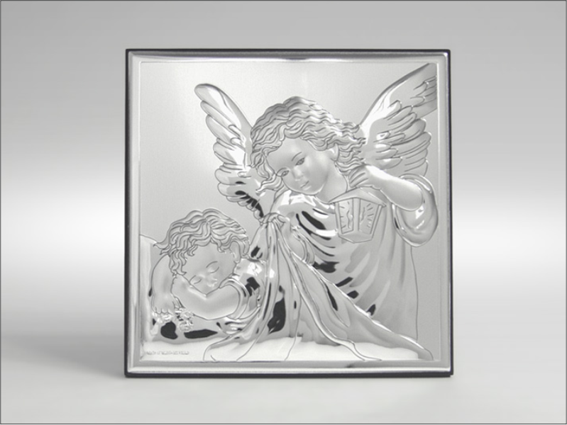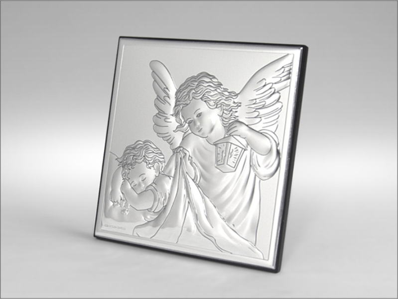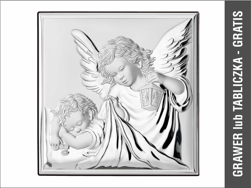 Srebrny Obrazek "Aniołek z latarenką nad dzieckiem kwadratowy 81200".