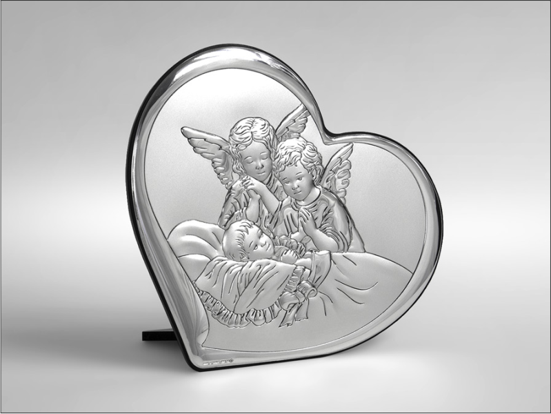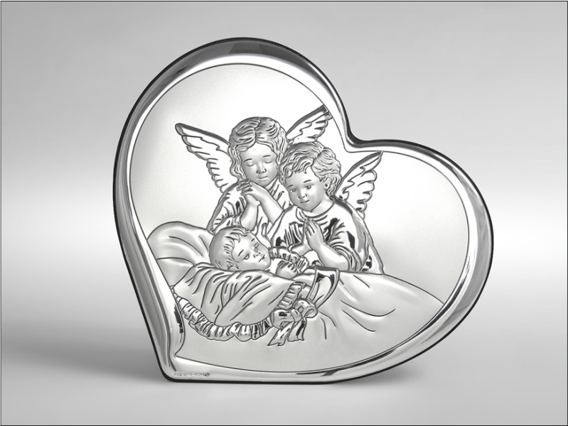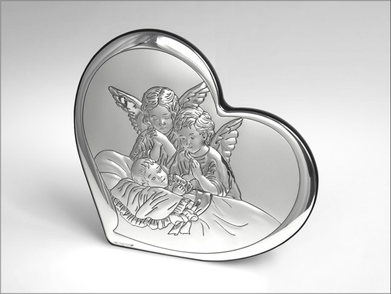 Srebrny Obrazek "Aniołki czuwające nad dzieckiem w sercu 6450".