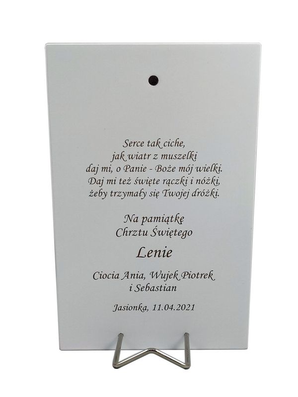 Na obrazku można wygrawerować indywidualną pamiątkową dedykację z okazji Chrztu Świętego.