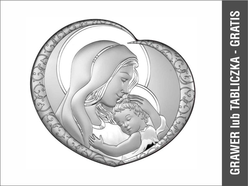 - obrazek srebrny przedstawiający wizerunek Maryi z dzieciątkiem