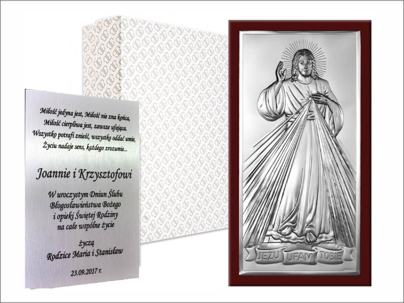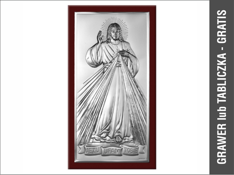 - obrazek srebrny przedstawiający wizerunek Jezu Ufam Tobie