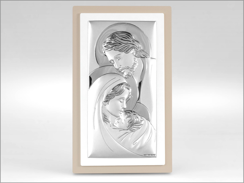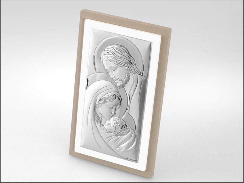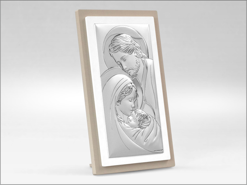 Srebrny Obrazek "Święta Rodzina 6380TP" na drewnianej ramce.