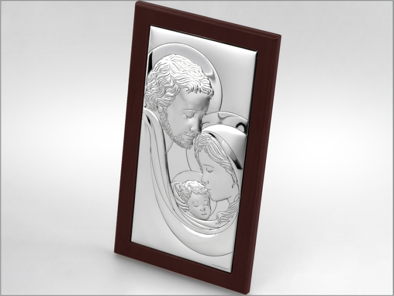 Srebrny Obrazek "Święta Rodzina 6650WM" na drewnianej ramce.