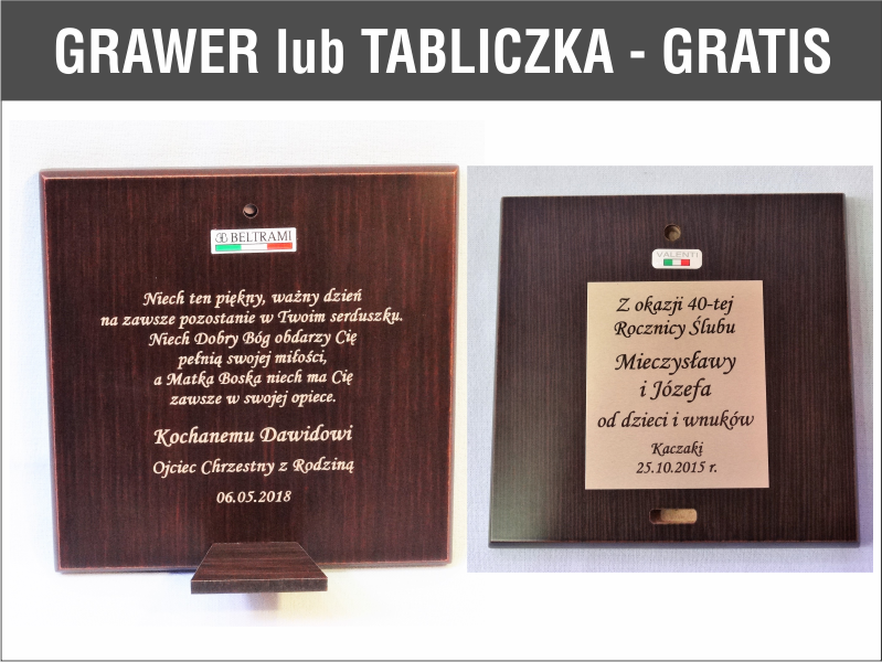- z możliwością indywidualnego graweru lub tabliczki z grawerem GRATIS