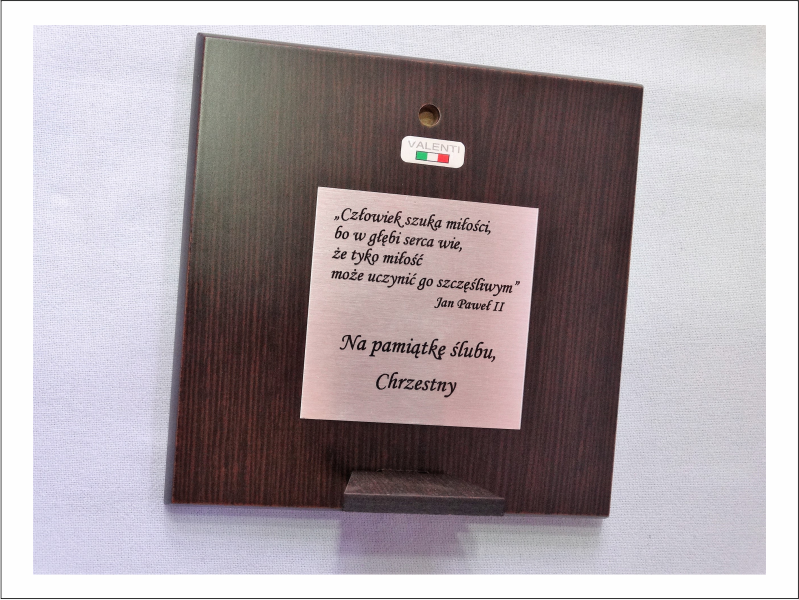 Na srebrnym obrazku możemy wykonać indywidualny grawer dedykacji.