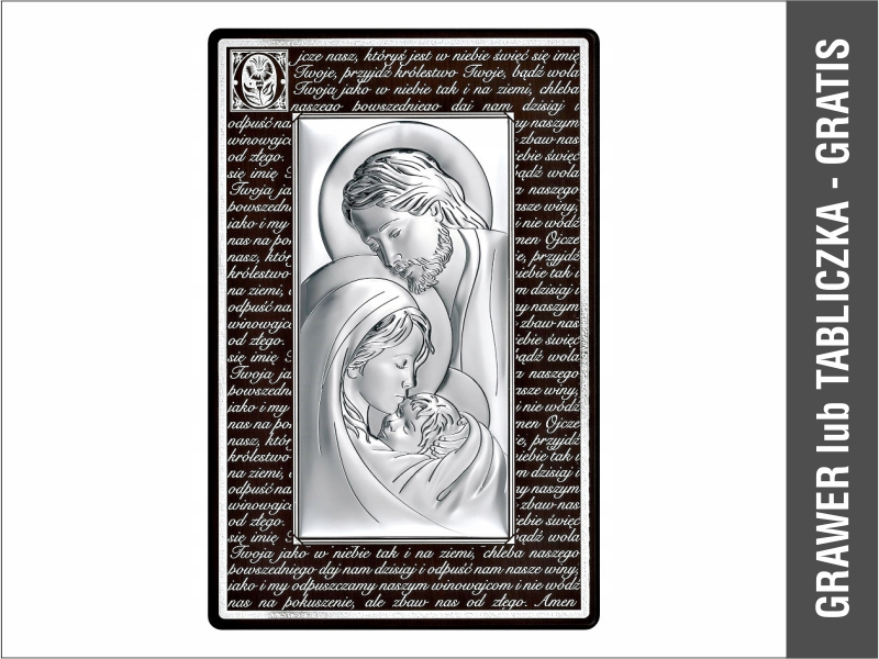 Srebrny Obrazek "Święta Rodzina 6380M" na drewnianej ramce z modlitwą.