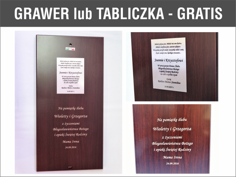 - z możliwością indywidualnego graweru lub tabliczki z grawerem GRATIS